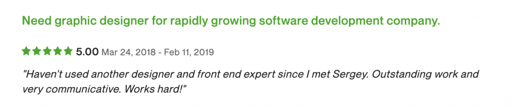 “Haven’t used another designer and front end expert since I met Sergey. Outstanding work and very communicative. Works hard!”